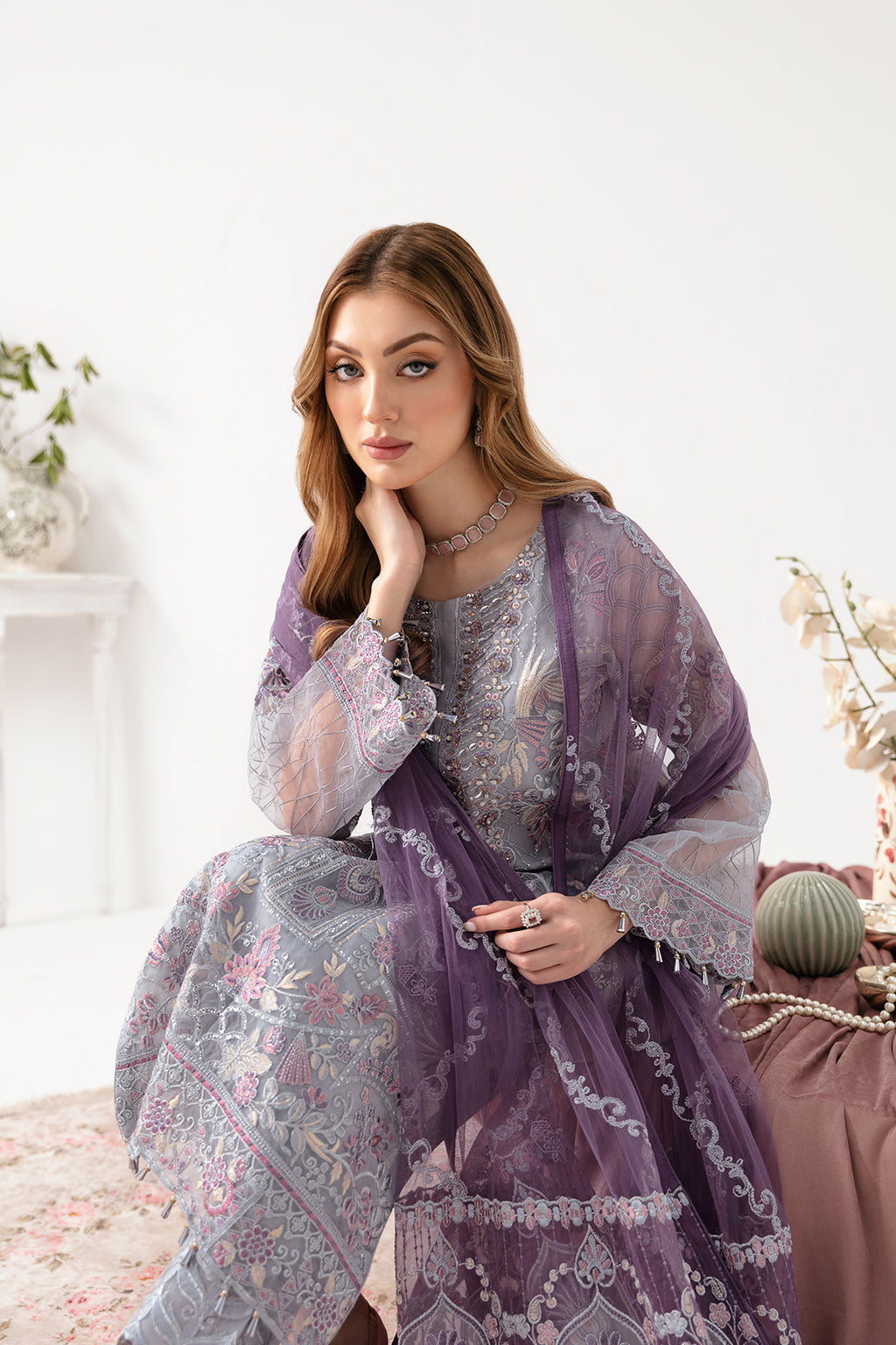 Note: Add Sizes in Inches only. Full Payment has to be made for stitched orders. Extra laces and tassels used in our outfits are only for shoot purposes and will not be included in the order.