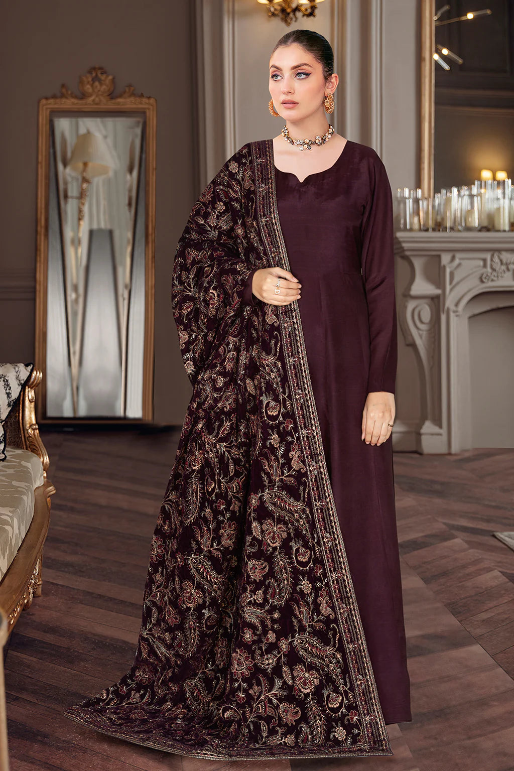 Note: Add Sizes in Inches only. Full Payment has to be made for stitched orders. Extra laces and tassels used in our outfits are only for shoot purposes and will not be included in the order.