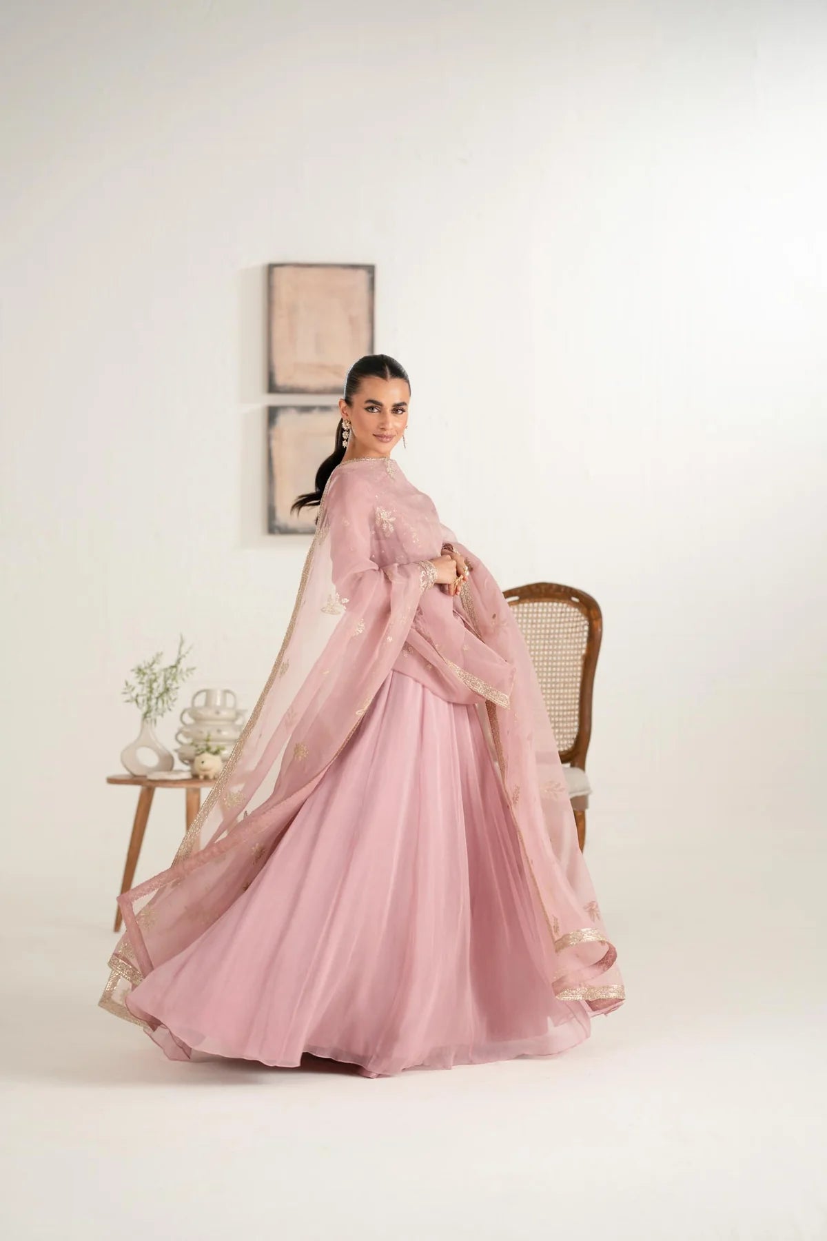 Note: Add Sizes in Inches only. Full Payment has to be made for stitched orders. Extra laces and tassels used in our outfits are only for shoot purposes and will not be included in the order.